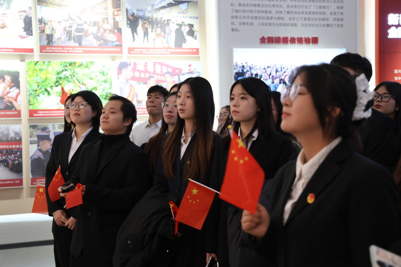 该展览全景展现了70年来在中国共产党坚强领导下、在全国各地大力支援下,新疆各族人民团结一心、艰苦奋斗、顽强拼搏取得的辉煌成就。展厅以“万方乐奏换新天”“潮涌天山展宏图”“美丽新疆铸辉煌”三大篇章为主线,1600余幅珍贵图片、1400余件实物模型以及150余个多媒体视频和场景还原。在讲解员的引导下,全体师生认真聆听讲解,沉浸式用心感悟。一幅幅真实的生动画面,一个个催人奋进的故事,一组组振奋人心的数据,深深地感染了每一位参观的师生。大家不时驻足观看,互相交流、打卡拍照,成为最动人的“大思政课堂”。